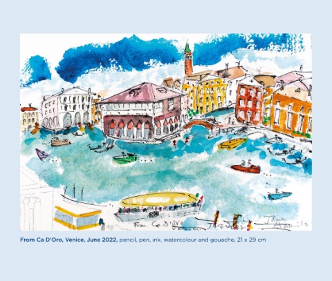 From Ca D’Oro, Venice, June 2022, pencil, pen, ink, watercolour and gouache, 21 x 29 cm